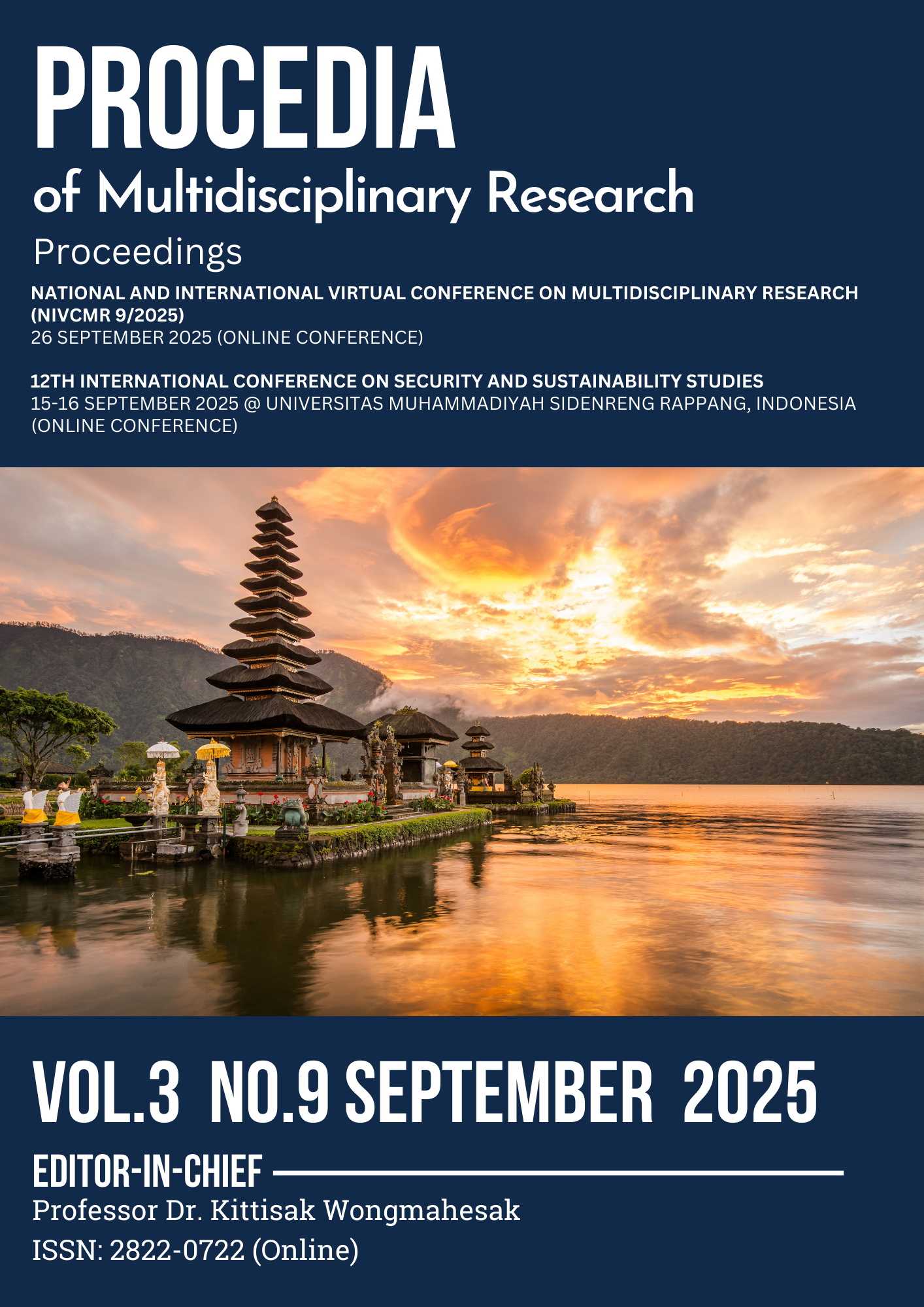 Vol. 3 No. 12 (2025)Procedia of Multidisciplinary Research (e-ISSN: 2822-0722) is an all-science, international open-access peer reviewed e-conference proceedings series published monthly by the Association of Legal & Political Studies (Thailand) and White Tiger Legal Business and Research Consultants Co., Ltd. (Thailand). It was created as a platform for publishing high-quality interdisciplinary abstracts/papers, in English, Chinese and Thai, which are considered to be presented at ALPS-WTLBRC conferences and their networks.